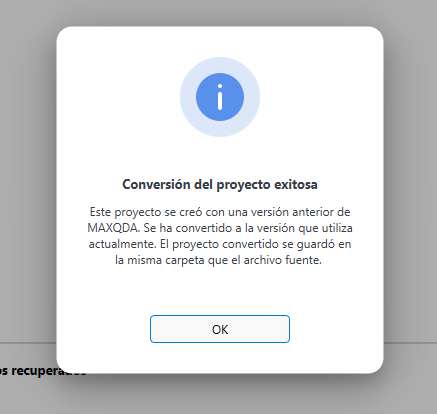 Al abrir el proyecto deseado, el archivo del proyecto se convertirá al nuevo formato .mqda.